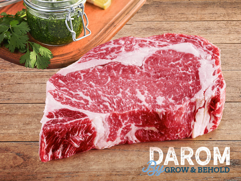 Any true steak lover will tell you that the ribeye is the best of both worlds: the eye of the rib is pleasantly marbled and mouthwateringly tender, and the luscious crescent wrapped around the outside edge is one of the most delicious morsels on the steer. We graze our Black Angus cattle on pasture in the mid-Atlantic region of the United States, where they enjoy a carefully balanced diet of grass, forage crops and hay that never includes hormones or growth promoting antibiotics, to bring you truly delicious, flavorful pastured kosher beef. We take care every step of the way to make sure the meat is raised well, processed humanely, expertly butchered, carefully packaged, delivered seamlessly and prepared with confidence in your kitchen. It is our great pleasure to bring these delicious meats to your table. Rib-eyes are one of our most popular steaks. Season them coarsely ground black pepper or garlic and herbs, or a steak rub of your choice. Serve one per person for a hearty meal, or serve sliced. *Price per pound is an estimate for comparison purposes only. Click on the "Details" tab to learn more.